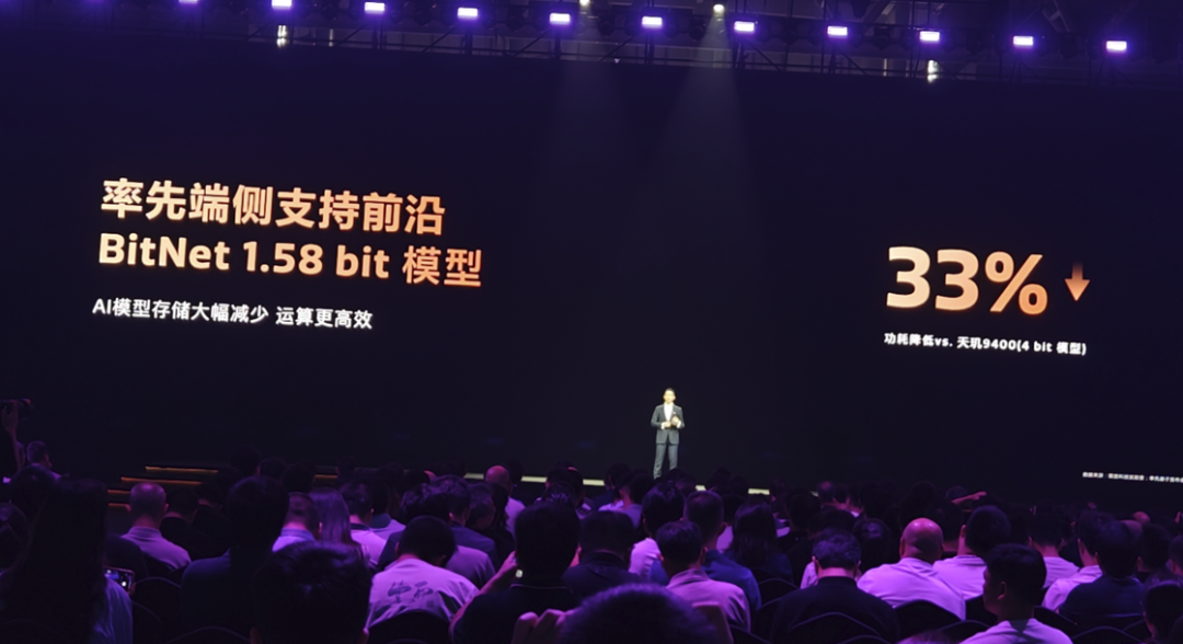 NPU 990 还率先支持 BitNet 1.58bit 大模型运算,通过减少端侧 AI 运算的存储需求,可以显著降低33%的模型运行功耗。