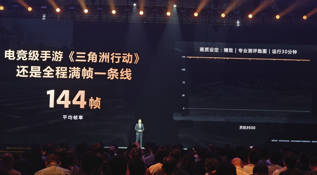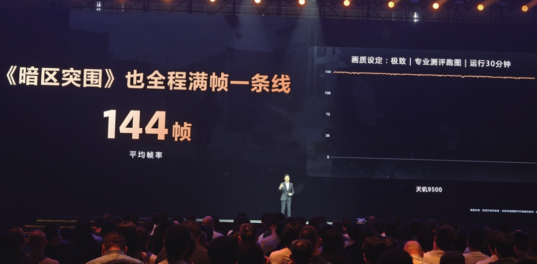 从实际的游戏表现来看,据联发科介绍,天玑9500在《和平精英》、《暗区突围》、《三角洲行动》等大型游戏144高帧游戏性能考验当中,也能全程保持满帧一条线。