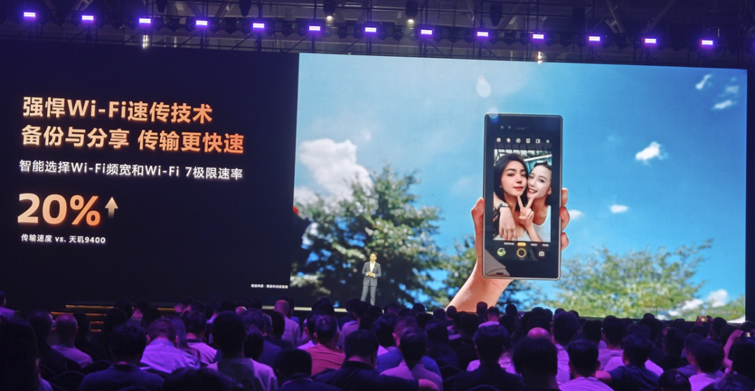 在Wi-Fi 联网方面,天玑9500带来了Wi-Fi 速传技术,支持智能优选 Wi-Fi 频宽,充分发挥Wi-Fi 7 速率优势,结合动态SoC 温度调控技术,移动设备的数据传输速率相较上一代可提升 20%。