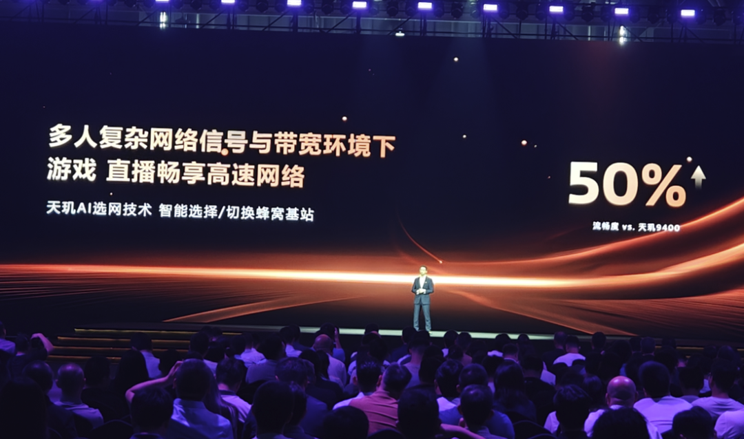 天玑9500的还支持天玑AI选网技术,即通过AI 辅助选网,自动优选蜂窝基站,可以使得游戏、直播畅享低延迟网络,流畅度大幅提升。与天玑9400相比,流畅度提升了50%。