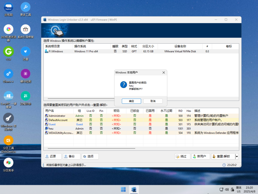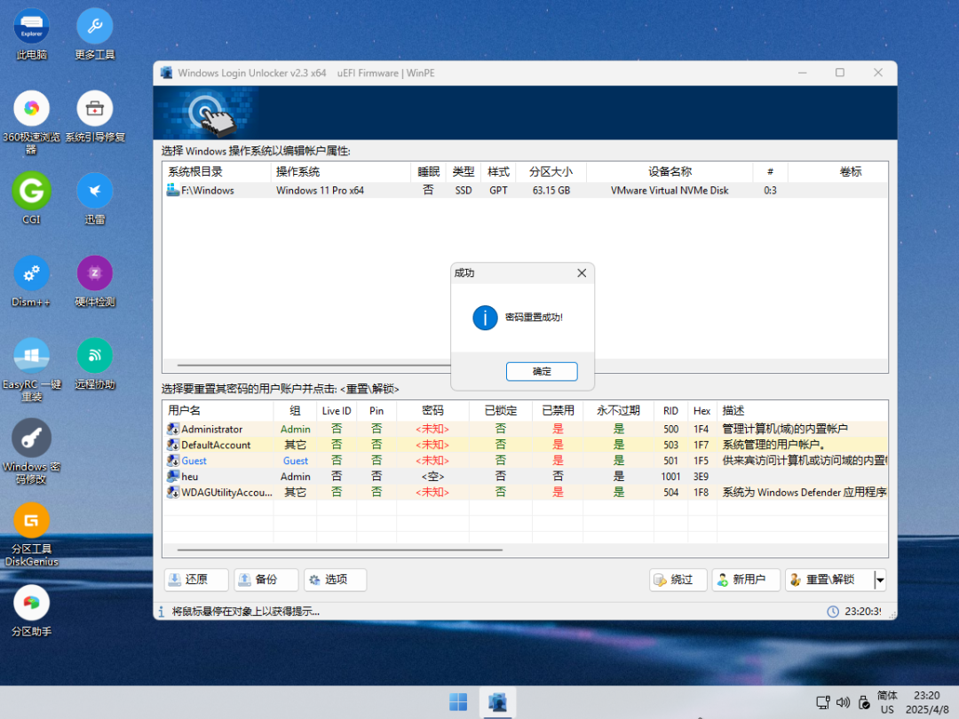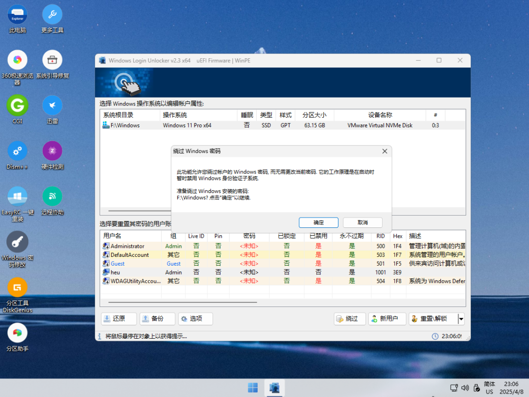 可以自行准备WinPE,以前推荐过的一款FirPE前几天更新到了2.0.3版本。这款PE还内置了今天要推荐的密码绕过神器「Windows Login Unlocker」,已更新到最新的2.3版本。文末一并提供下载地址。下面介绍一下使用方法。
