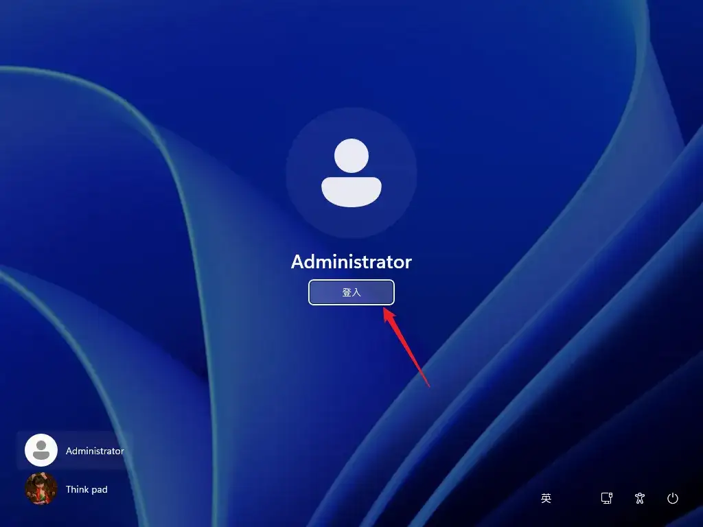 重启电脑后,发现登录界面多了一个管理员账号(本地账号),直接点“登录”,后面需要等一小会儿,然后可能再点击一下“下一步→接受”,很快就进入桌面了。