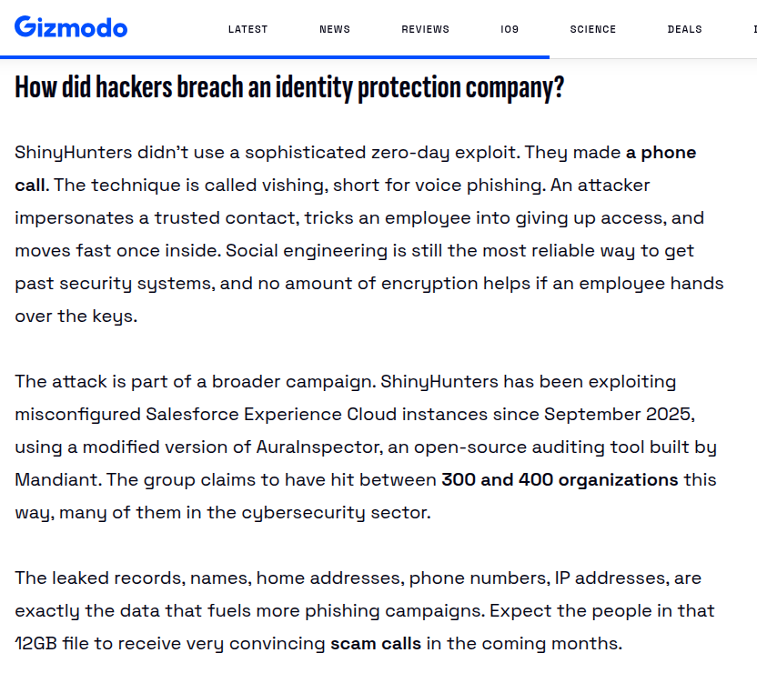 关键词:身份保护;数据泄露;语音钓鱼;社会工程学;零信任;Salesforce配置错误