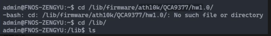 提示没有这个目录或者文件存在,这是因为飞牛官方源里面内核没有内置高通固件目录,因为这个高通型号是非主流,所以飞牛没有内置,既然官方没有内置这个官方源目录,我们就可以进行创建一个这个目录。