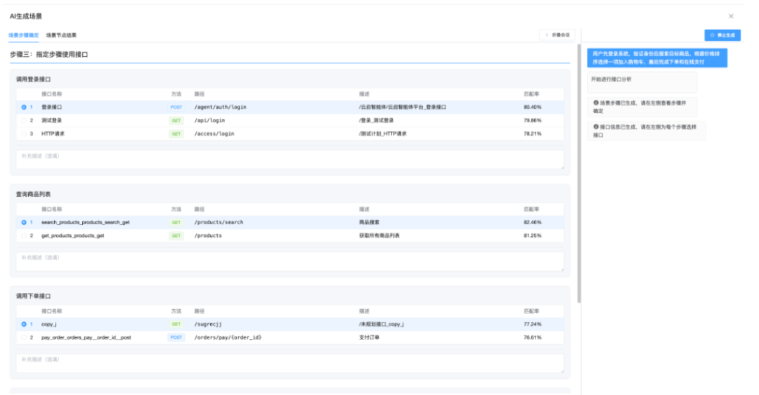第四步:AI编排选择的接口并生成测试场景
