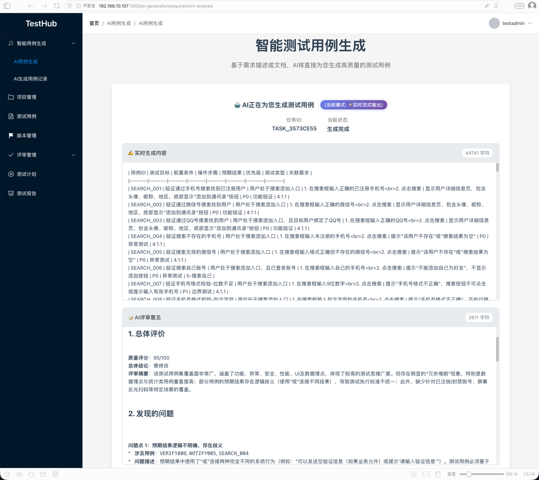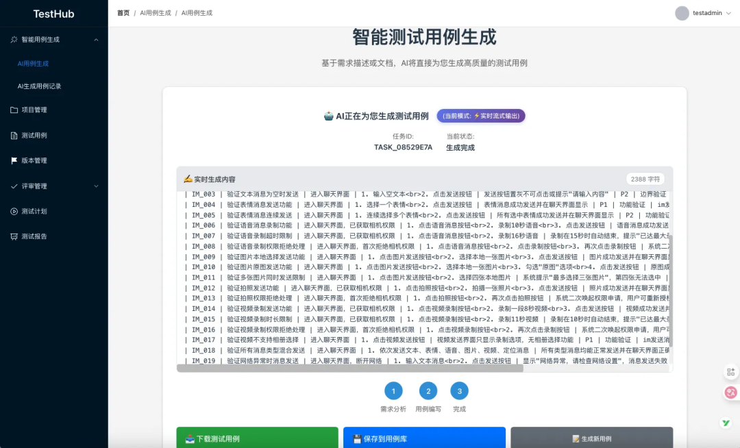 大家好,TestHub这次带来了重磅更新-AI 用例生成模块增加流式输出!下面是这次具体更新明细: