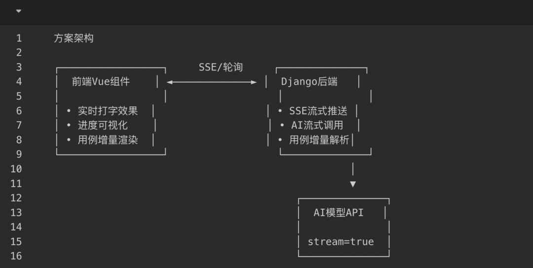 所以这次特地开发了流式输出,方案架构如下: