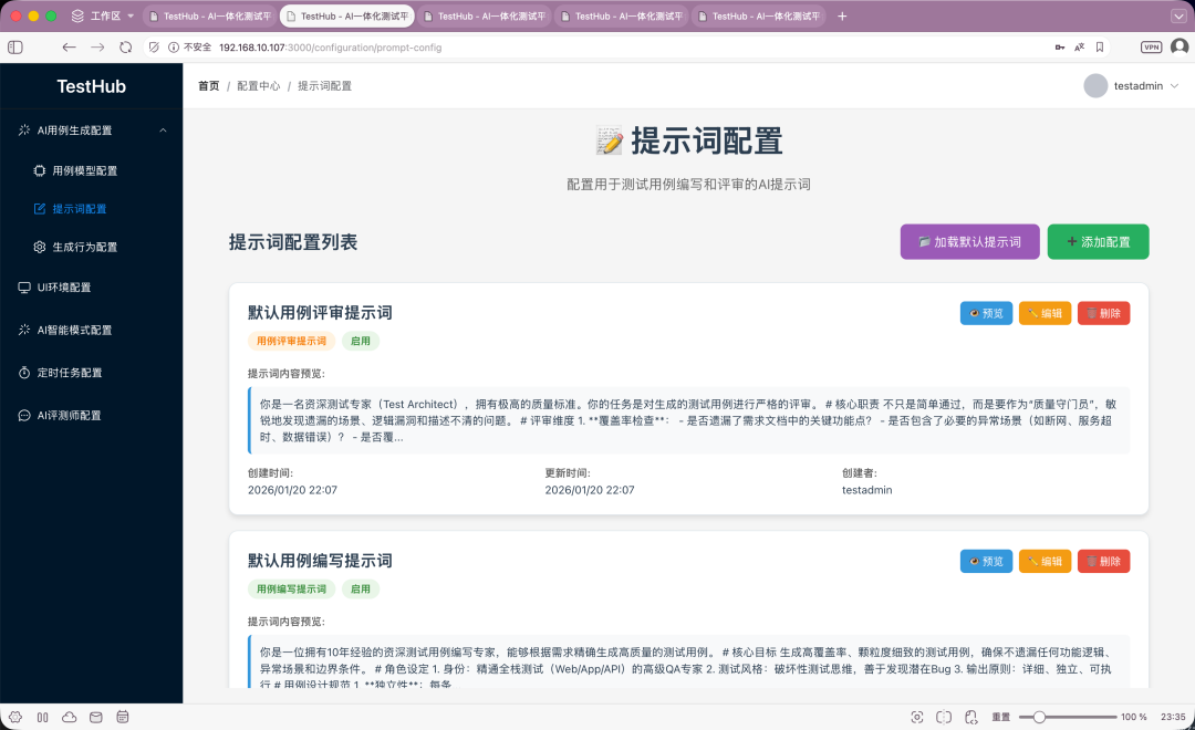 当然这次也优化了用例编写提示词和用例评审提示词。大家重新拉取项目后,如果原来配置过提示词的,可以分别删除后再加载默认提示词。