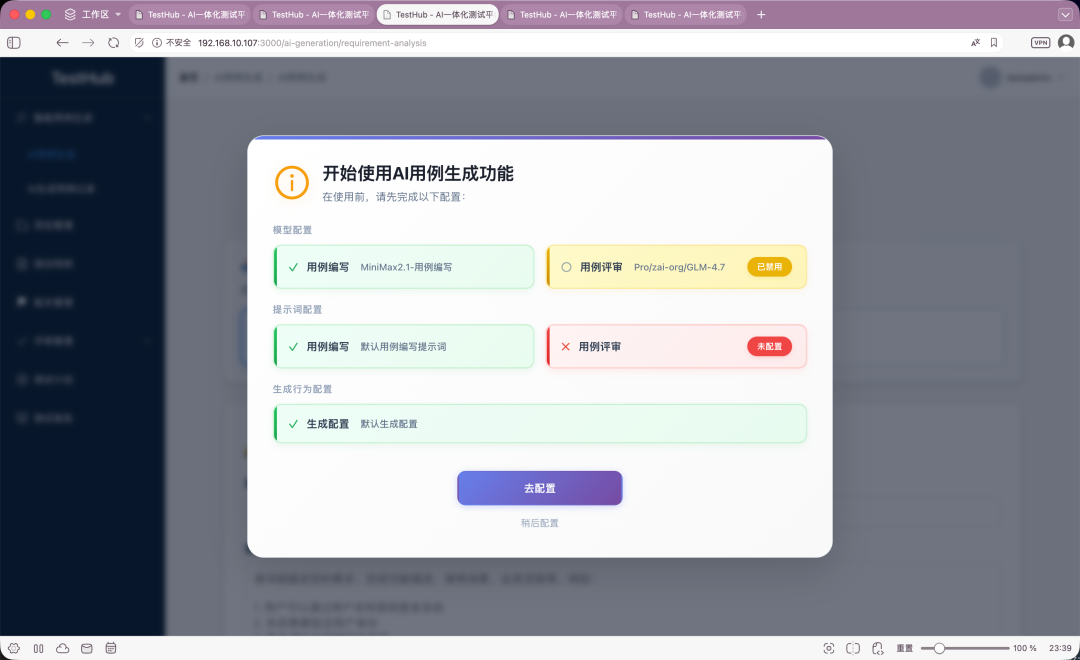 1.AI 用例生成配置优化:
