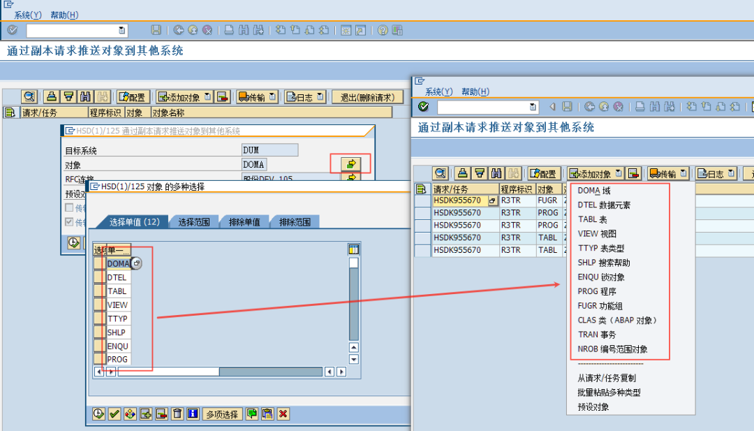 最近在做一个项目,开发了一大堆的域、数据元素、表、结构、程序、函数等。跟往常的项目开发不同的是,这个项目需要在好几套单独的SAP上线,也就是说,这些开发的内容需要部署在好几套SAP上,这几套SAP有S4、ECC和R3,但是都可以通过RFC互相连通。
