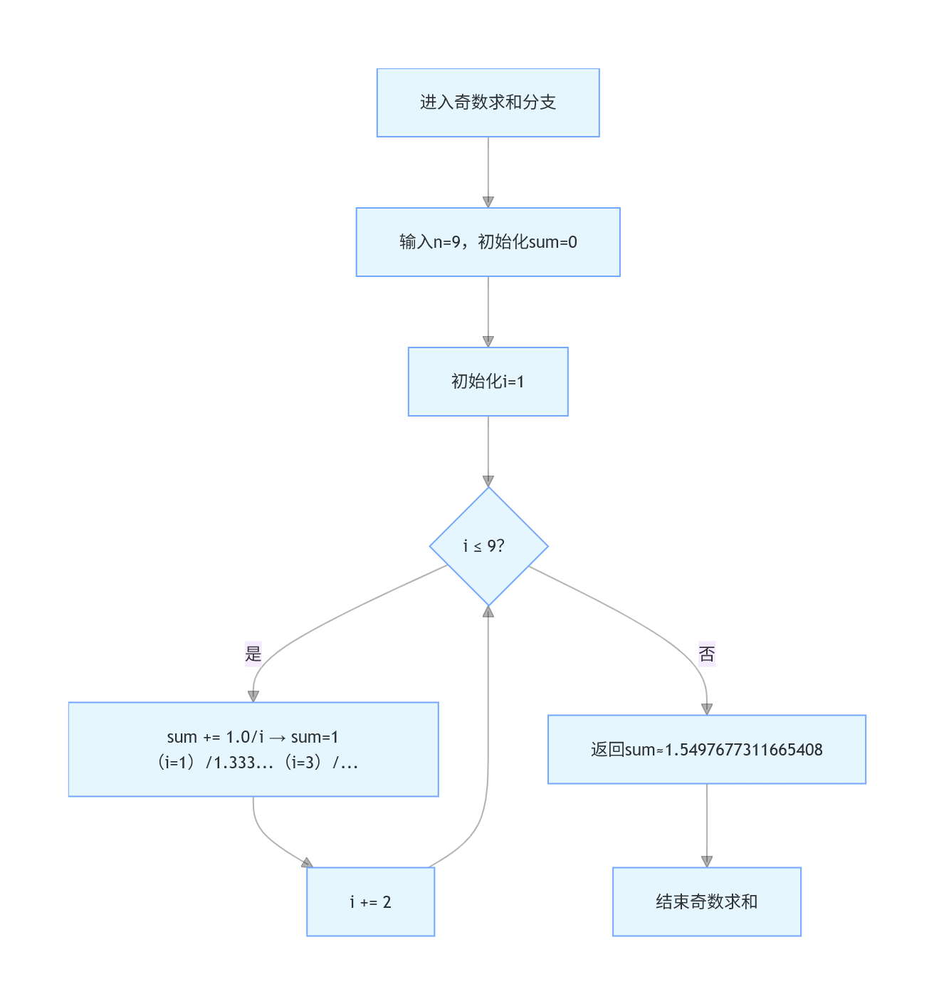 System.out.println("When n is 9, the sum is: " + calculateSum(9)); // 应输出约 1.5497677311665408