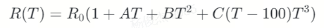 对于高精度需求,可采用 Callendar-Van Dusen 方程补偿: