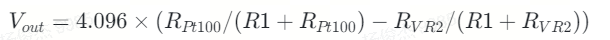 根据运放虚地、虚断特性,恒流值 I=4.096V/R1,Pt100 压降仅与其电阻相关,不受导线电阻影响,在 - 50℃~600℃全量程精度比桥式电路高 0.3℃~0.5℃。
