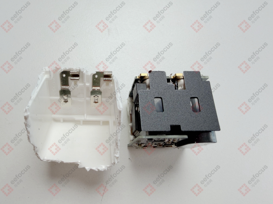 值得注意的是,内部三块 PCB 小板采用组合焊接设计,输入端小板上类似 “金手指” 的铜触点,成为其与固定式国标插脚连接的关键部件。