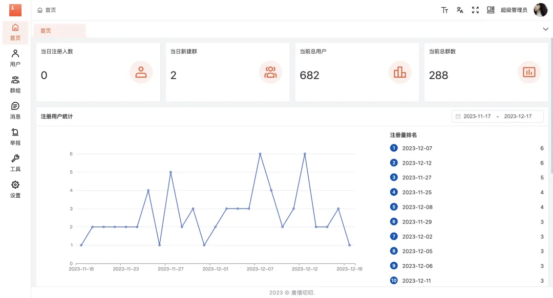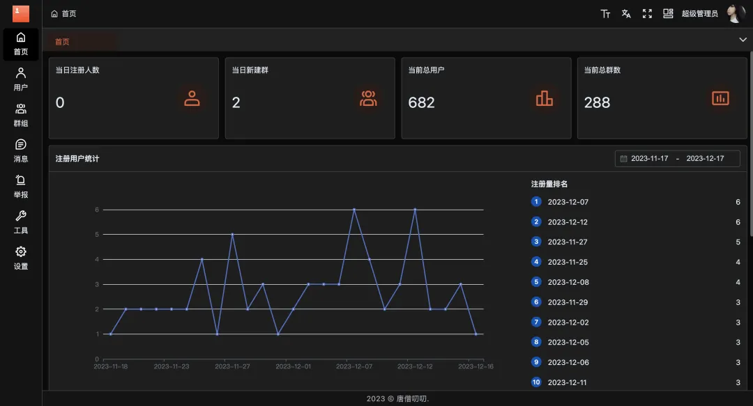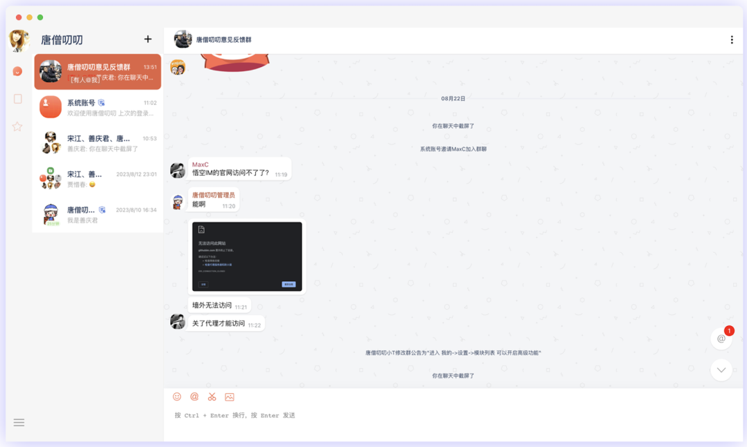 唐僧叨叨是一款几个老工匠,历时八年时间打造的运营级别的开源即时通讯聊天软件。具有轻量级,高性能,重安全的特点,支持私有化部署,界面美观且开源。