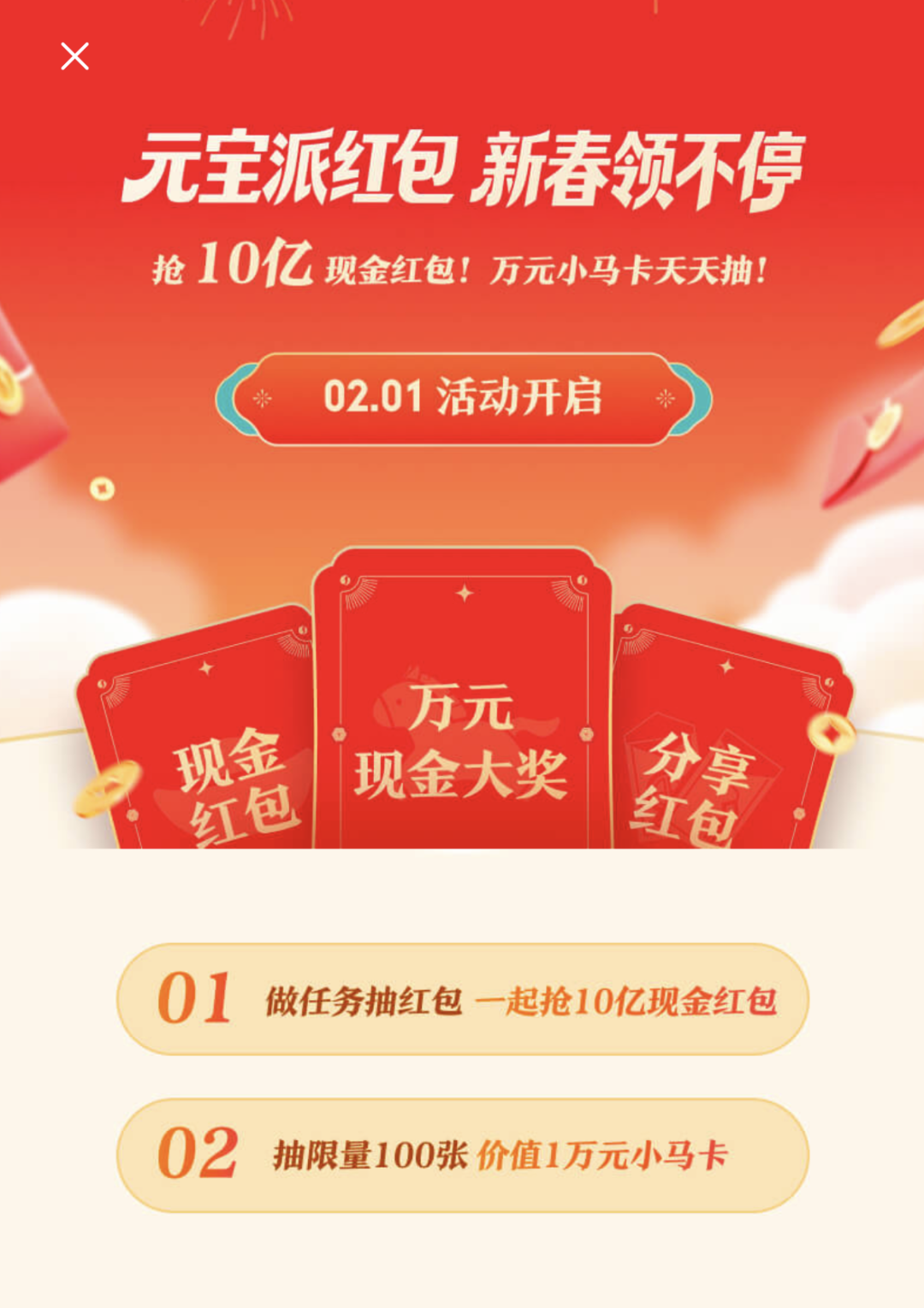 这场10亿红包大战的玩法,官方已经说得明明白白,没有半点含糊。活动分预约和正式两个阶段,从1月25日开始,大家把元宝App更到2.55.0及以上版本,点主页的预约卡片就能锁定资格,等2月1日活动正式上线,还能额外多拿10次抽奖机会,活动会一直持续到春节期间。