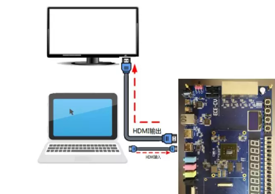 下板验证图像由笔记本电脑通过HDMI输入到FPGA芯片,经过FPGA算法处理后在通过HDMI将图像送到显示屏展示处理效果。