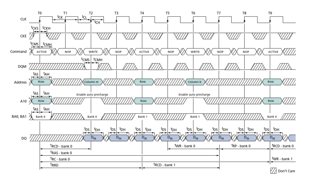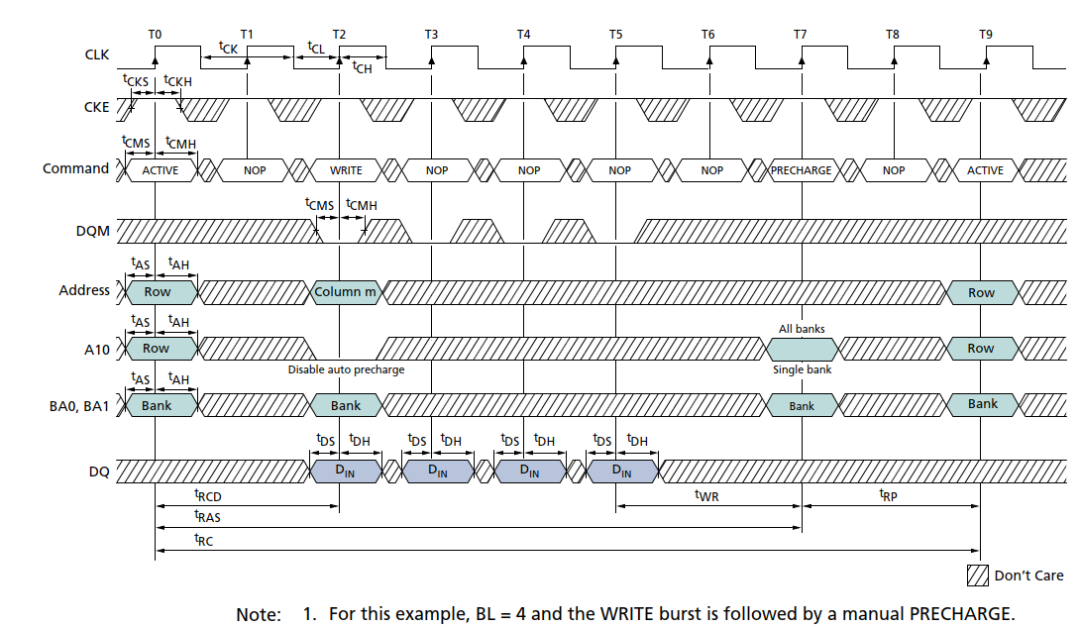 以SDR SDRAM的写入为例: