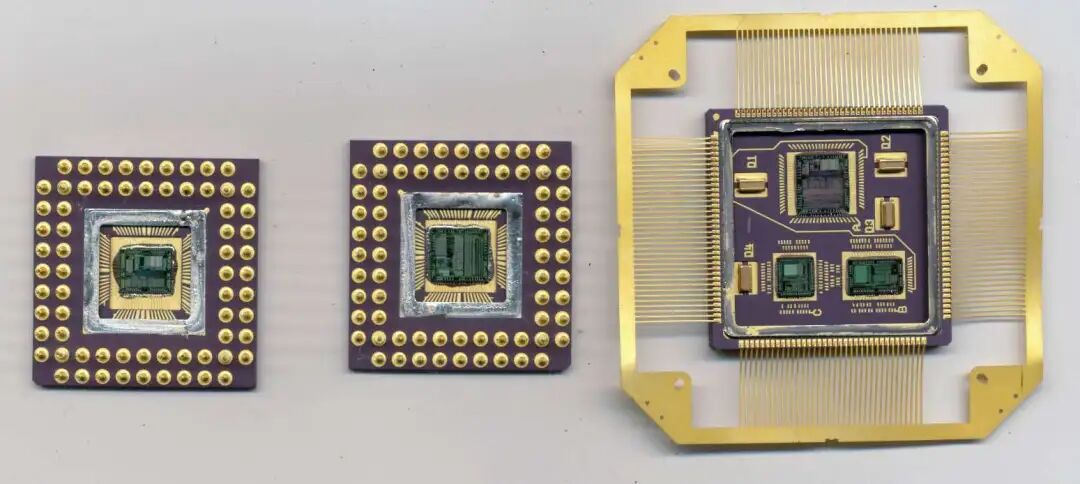 可以看看CPU Shack网站上一个采用Pyramid Semiconductor MIL-STD-1750处理器的多芯片封装示例:(https://www.cpushack.com/CPU_Photos2/pyramid/MIL-STD-1750A-Pyramid.jpg )