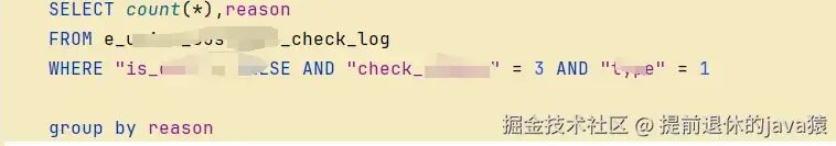 下面代码就是用代码实现的分组统计........没错就是我们 Android 工程师写的,因为公司去年就不用维护客户端了,安卓写java,ios写前端。