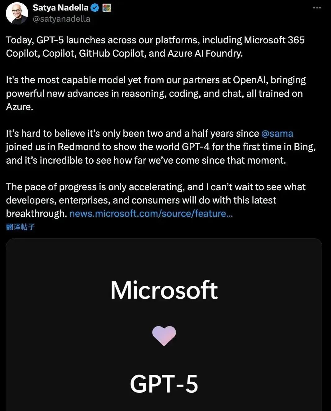 GPT-5 也在微软平台上线了。