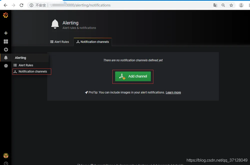 登录网站:Grafana的ip地址:3000,添加数据源,如果之前已经在Grafana中添加了此DataSource(指向了安装有Prometheus的ip地址和对应端口),则无需重新添加,在导入面板的时候,可以直接引用此DataSource;