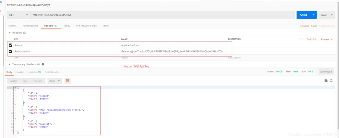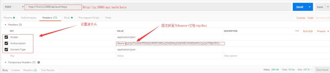 将Key后面的内容作为 Authorization中的Bearer 后的内容: