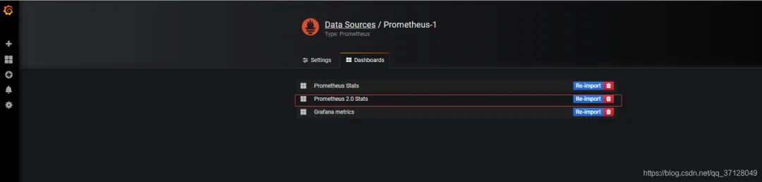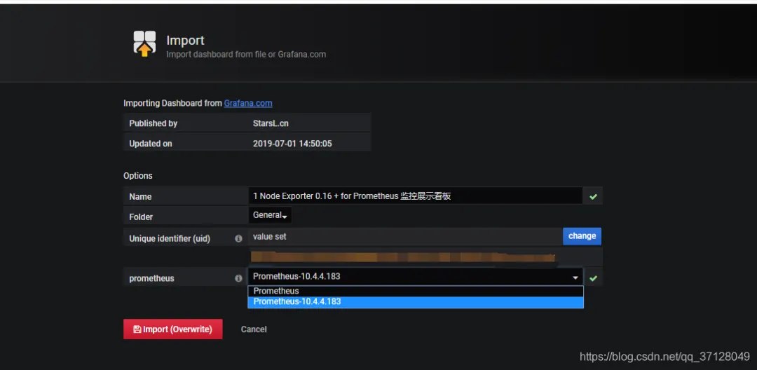 如果前面已经对此Prometheus的DataSource进行过配置,则无需再次配置,在导入展示面板的时候直接指向此已经写好的展示面板即可;