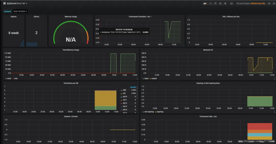 注意,也可以自己找其他的展示面板,在官方的面板页面找到数据源为Prometheus的Redis展示面板,在上方所说的对应位置输入它的编号即可。
