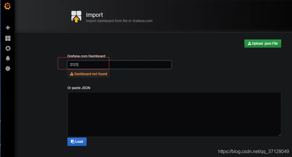 在侧边栏菜单中,依次点击 + 号 > Import 打开 Import Dashboard 窗口。