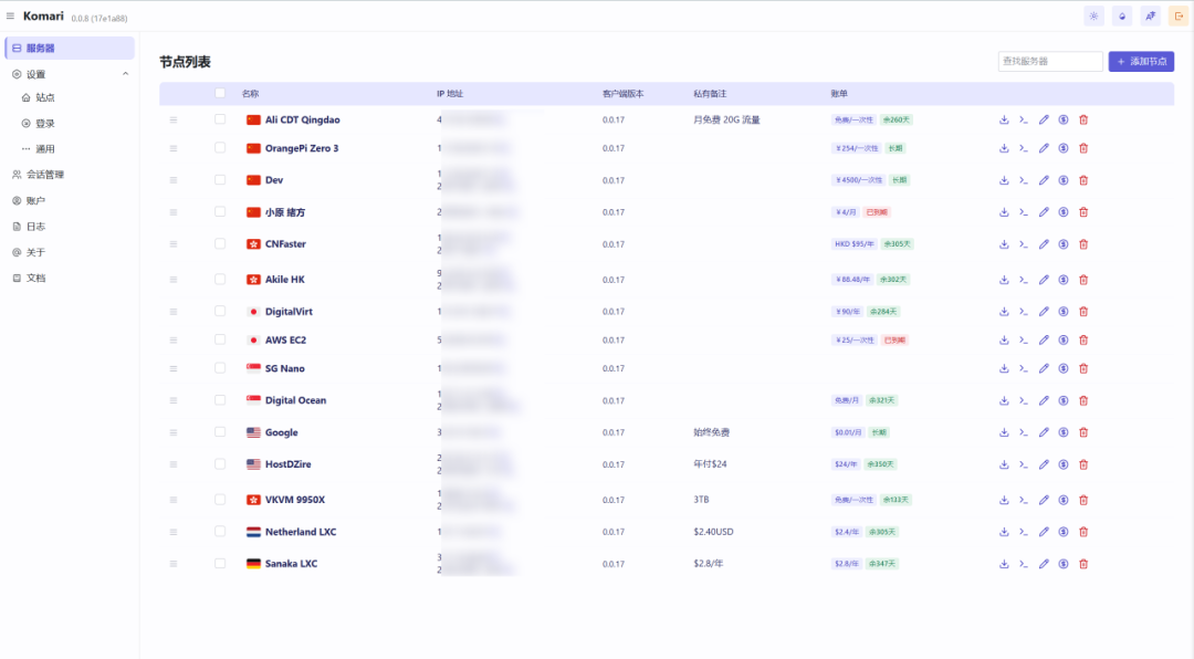 验证 Agent 连接:在 Komari Web 界面查看 “服务器列表”,确认新服务器状态为 “在线”。