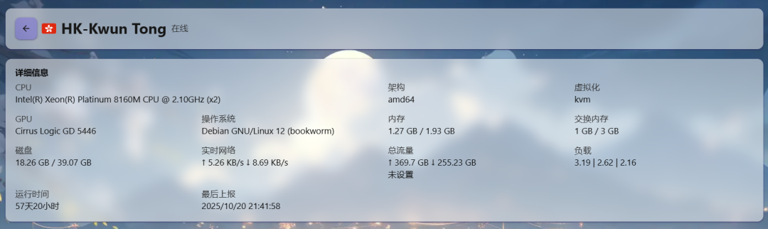 基础信息:服务器名称、操作系统、运行时间、剩余有效期。