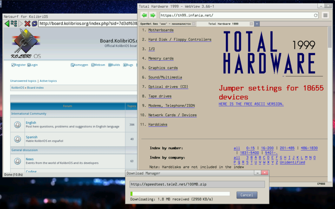 2004 年,MenuetOS 部分版本转向闭源开发,社区成员基于最后一个开源版本(0.99)创建了 KolibriOS。