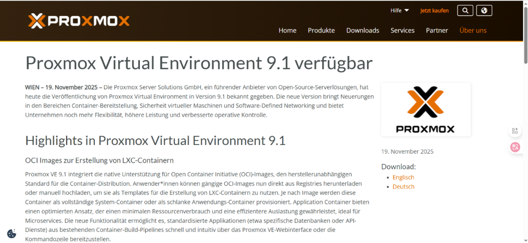 开源虚拟化管理平台 Proxmox VE 9.1 正式发布,突破传统限制,无需套娃直接通过 oci 原生运行 docker 镜像!实现轻量化容器化应用管理。