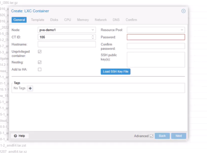 步骤 1:点击 “创建 CT”,填写基础信息(如 CT ID、主机名、密码等)。