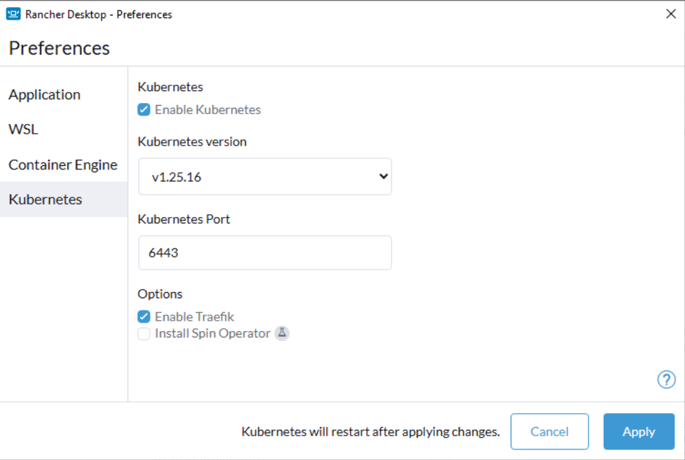 启动 Rancher Desktop后,它会自动配置和启动 Kubernetes 集群。用户可以在Kubernetes Settings选项卡中查看和管理Kubernetes的默认参数配置。