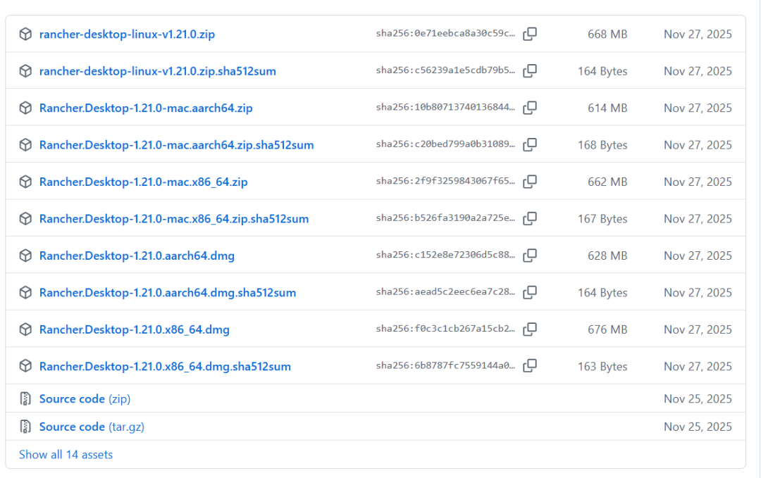 用户可以从 Rancher Desktop 官方网站(https://github.com/rancher-sandbox/rancher-desktop/releases)下载适合自己操作系统的版本并进行安装。