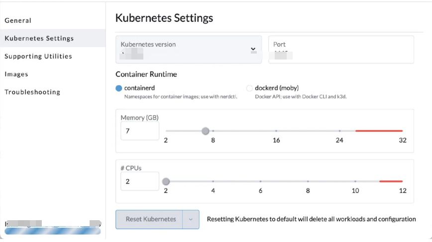 启动Rancher Desktop后,用户可以在设置中配置Kubernetes版本、CPU和内存资源等。