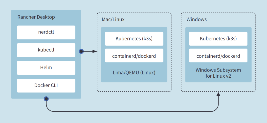 这使得 Rancher Desktop 能够在Mac(包括Intel和Apple芯片)、Windows 和 Linux 等多种操作系统上运行,并提供一致的用户体验。