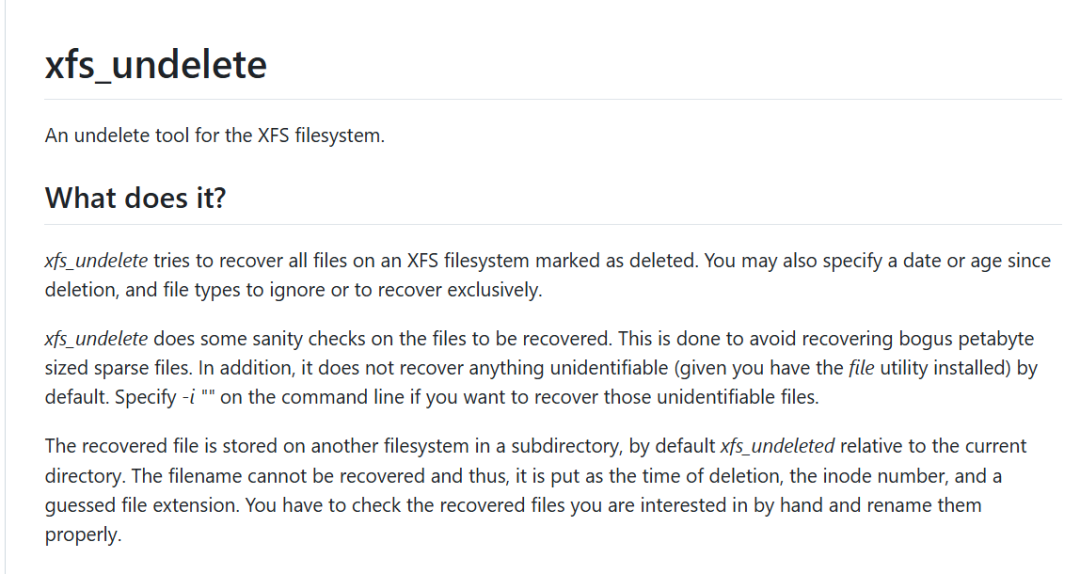 项目地址:https://github.com/ianka/xfs_undelete