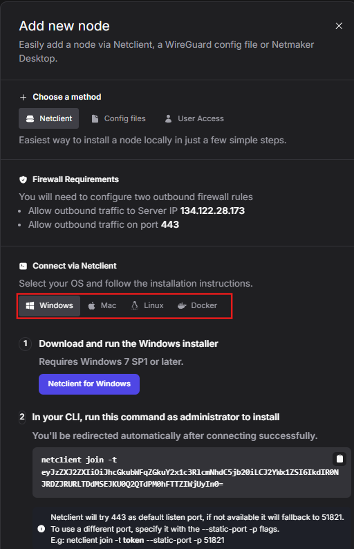 Windows下载链接:https://fileserver.netmaker.org/releases/download/latest/netclientbundle.exe 下载文件后双击直接安装即可。