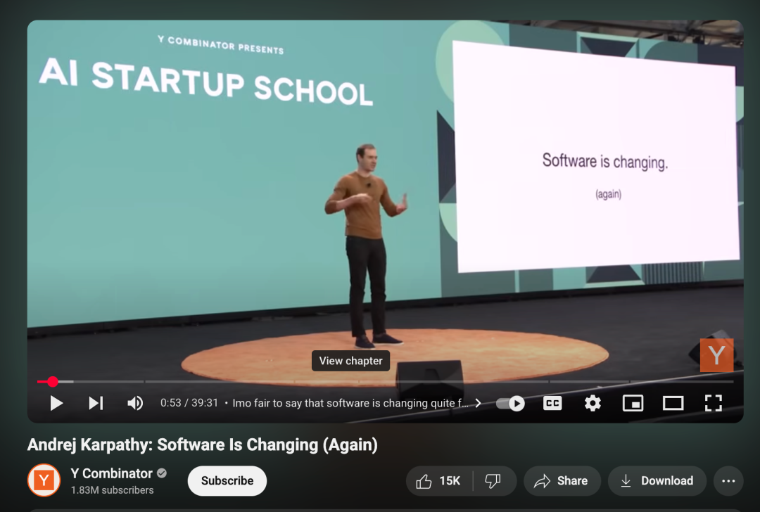 Andrej Karpathy's 在几天前YC的 AI Startup School 里做了题为: