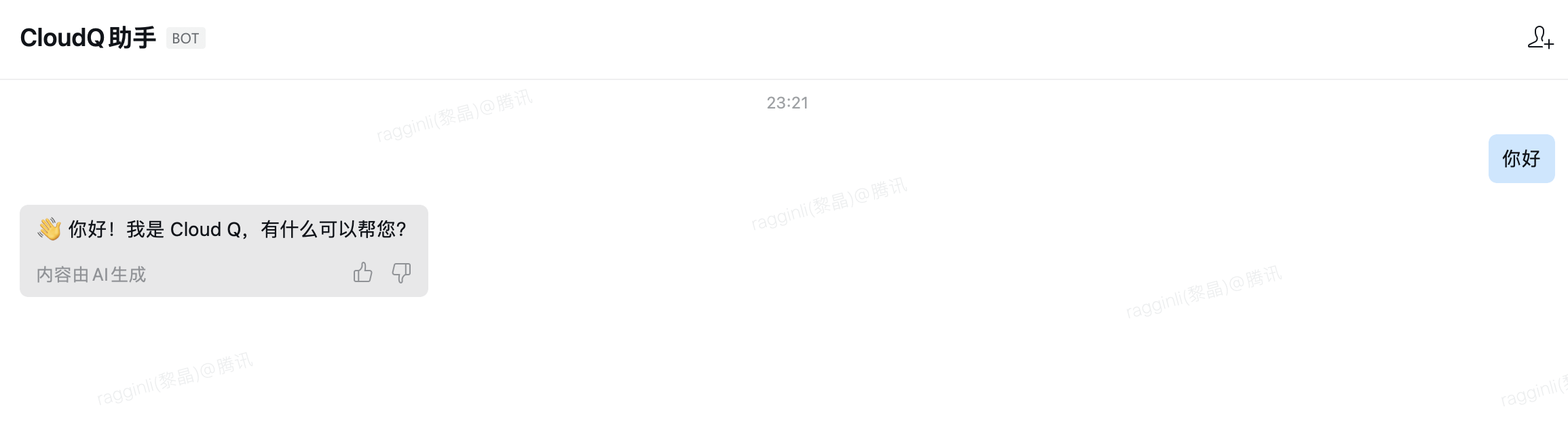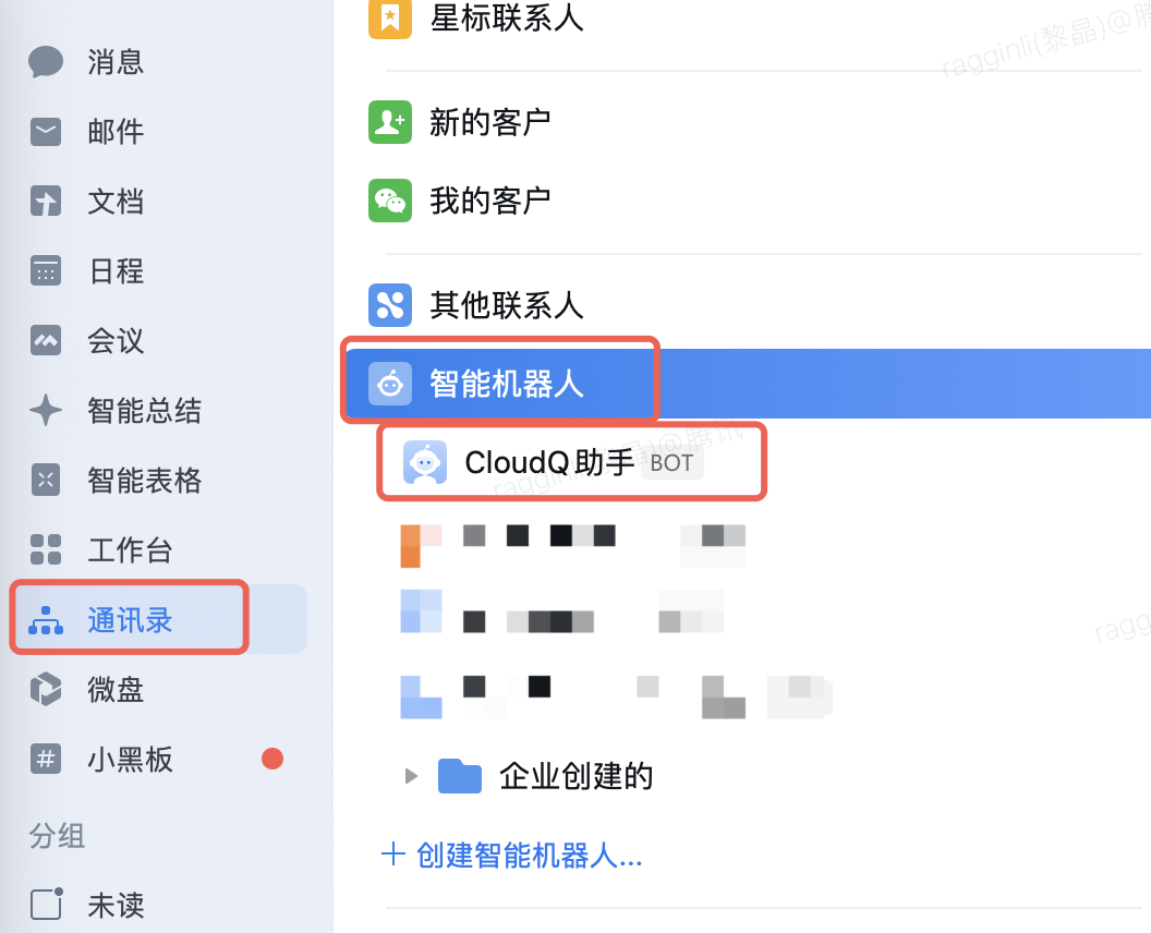 配置完成后,在企业微信中即可使用 CloudQ:
