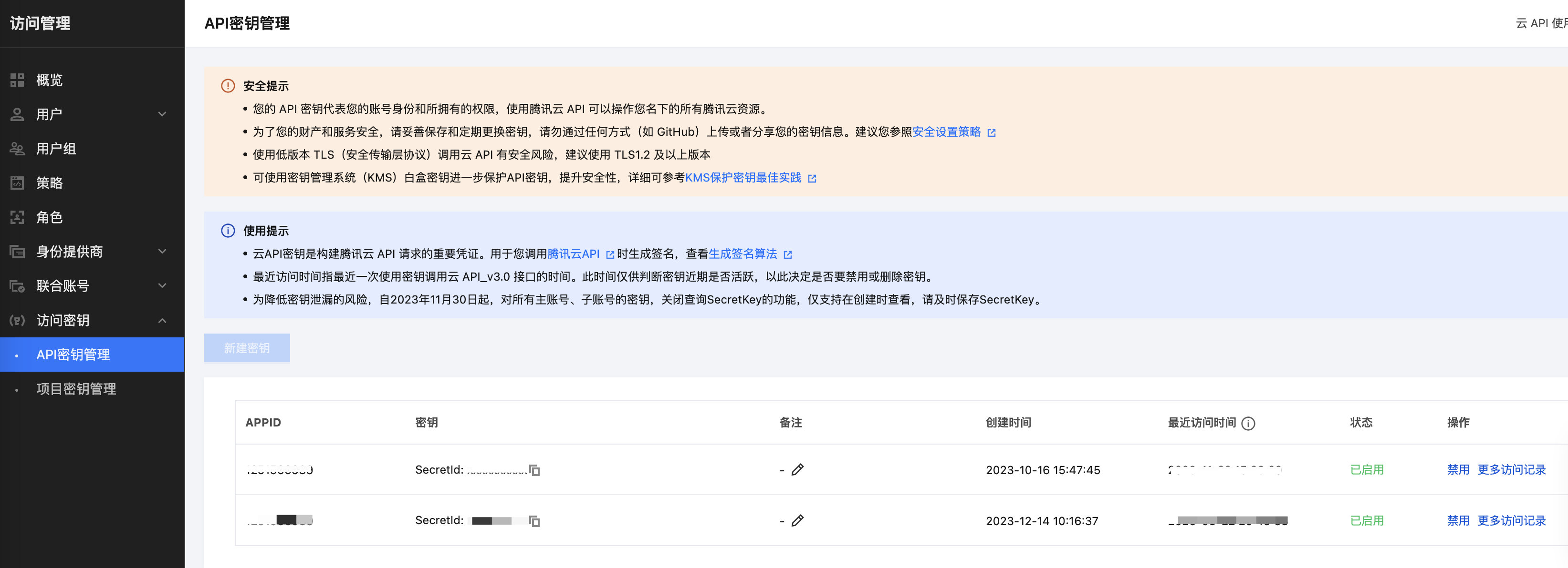 获取方式:登录 腾讯云 API 密钥管理,新建或复制已有密钥。