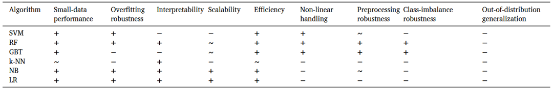 图4给出了代表性案例,展示传统ML方法在表2所述任务中的成功应用,并突出其在小数据条件下的表现。这些案例表明,即使在标注数据有限的情况下,传统ML方法仍可实现稳健且可解释的结果。