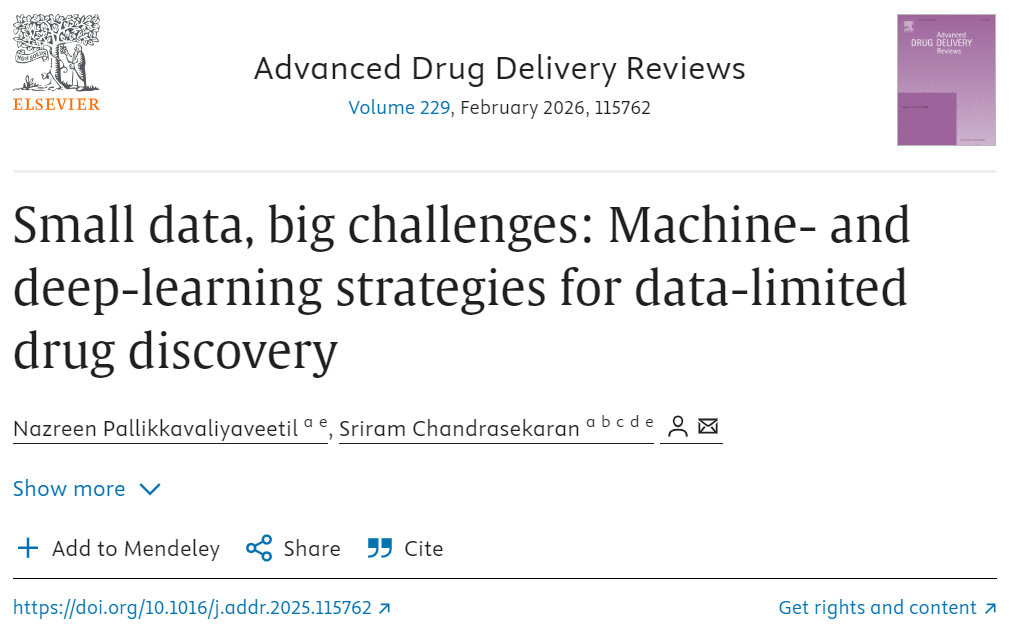 针对上述问题,密西根大学Nazreen Pallikkavaliyaveetil与Sriram Chandrasekaran于2025年12月18日在《Advanced Drug Delivery Reviews》期刊上发表综述文章,题为“Small data, big challenges: Machine- and deep-learning strategies for data-limited drug discovery”。该综述通过梳理关键药物发现任务,综合分析适用于这些情境的传统ML方法与先进DL策略。
