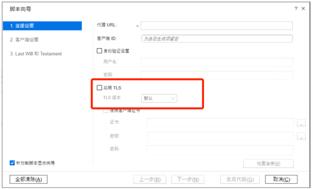 1)启用SSL协议:在 VuGen 中,选择使用 HTTPS协议或其他支持 SSL/TLS 加密的协议(如 MQTT over TLS)。测试人员可以配置虚拟用户脚本,通过加密的通信通道进行数据交换。