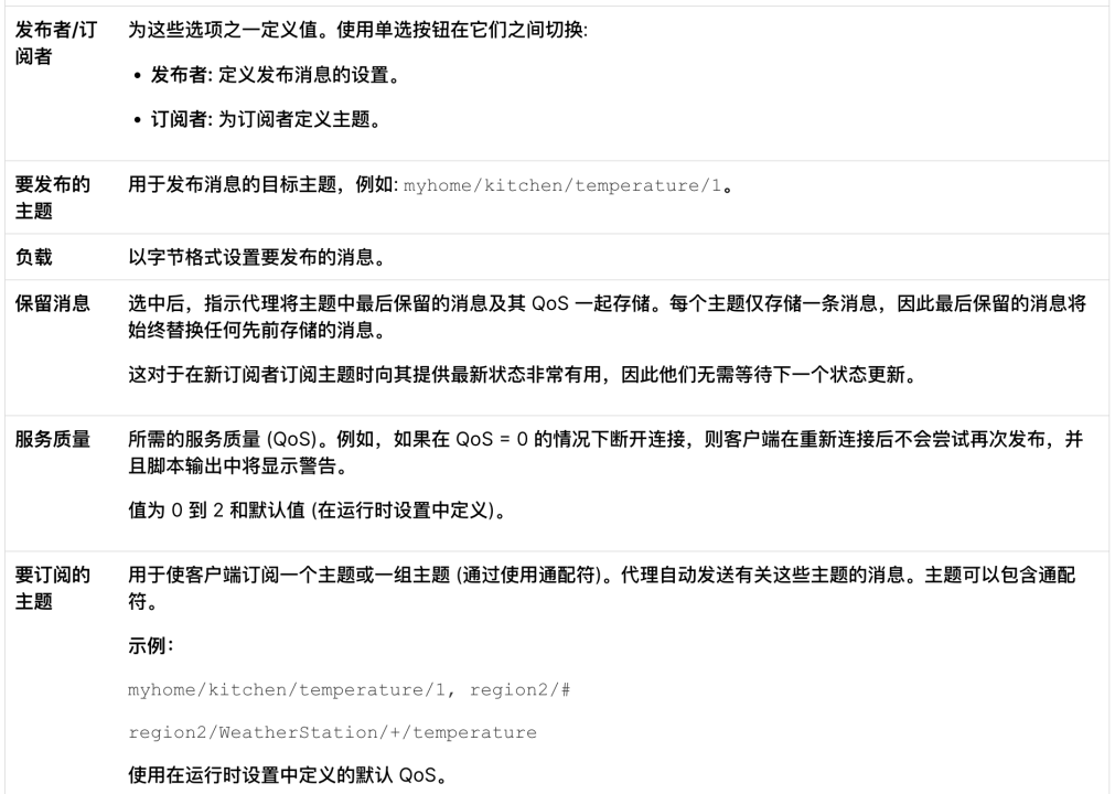 MQTT $SYS 主题 | 监控在负载测试场景运行期间的 MQTT 代理计算机系统资源使用情况。此信息可以帮助找出服务器性能瓶颈。 |