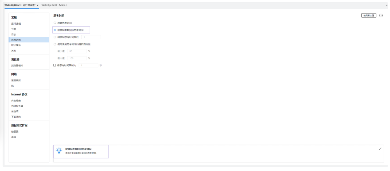 在解决方案资源管理器中,双击“运行时设置”。在“<测试名称>:运行时设置”视图中,根据需要配置运行时设置。要查看各个运行时设置的描述,将光标悬停在运行时设置字段名称上即可。