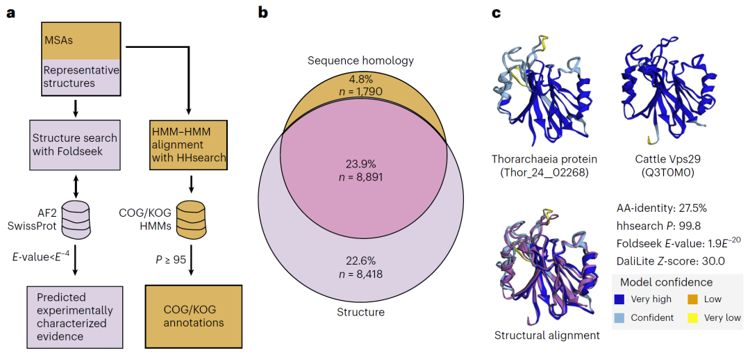 然而,由于阿斯加德古菌蛋白与真核蛋白之间的序列差异非常大,传统基于序列相似性的同源检测方法往往难以识别它们之间的关系。随着蛋白结构预测技术的发展,特别是AlphaFold等方法的出现,研究人员可以通过结构相似性而非序列相似性来识别远缘同源蛋白,从而更全面地揭示古菌蛋白与真核蛋白之间的演化联系。